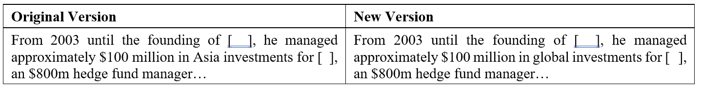 We also see non-investment related changes that can lead to further inquiry. These can include removing AUM breakouts for feeder vehicles or changing an employee’s responsibilities. One manager even changed the description of his work at a prior firm from having previously focused on Asian markets to having been a global analyst: